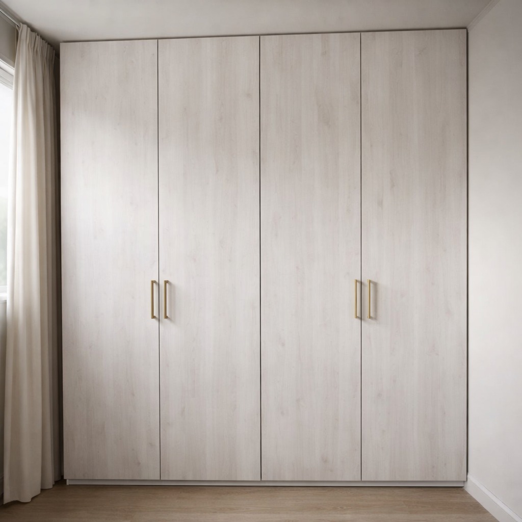 Moderne maatwerkkast met rustige houtlook en strak, minimalistisch design